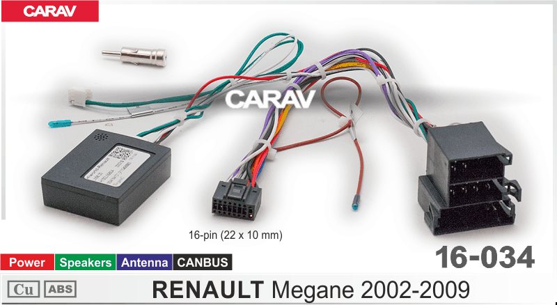 —CARAV 16-034 разъем 16-pin RENAULT Megane 2002-2009 (Питание + Динамики + Антенна)